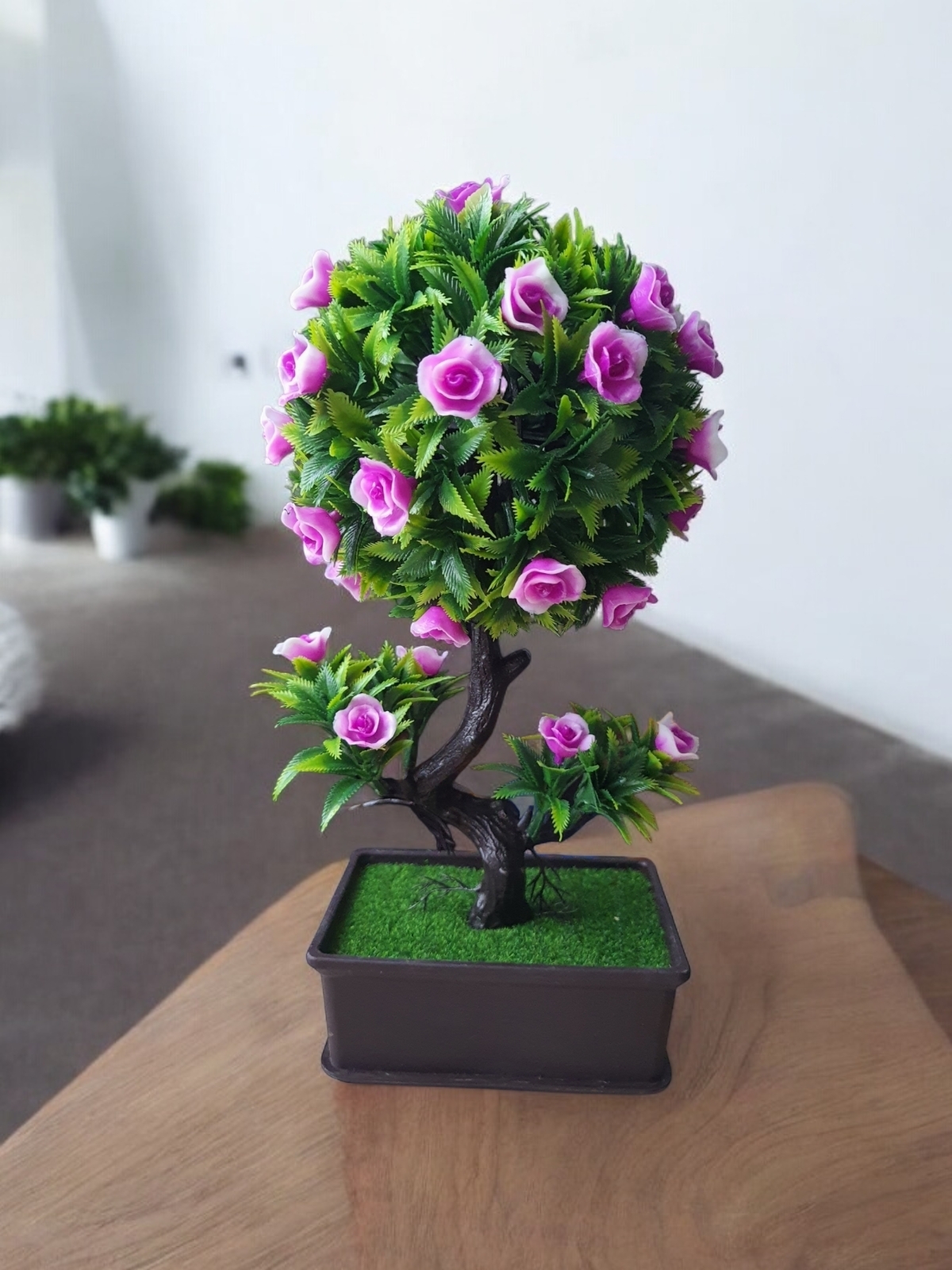 Plantele decorative artificiale reprezintă o modalitate eficientă de a înfrumuseța și a crea un ambient plăcut in orice încăpere. Bonsai artificial cu flori roz este prevăzut cu frunze cu detalii perfecte, bucurându-se de un aspect realist care nu se va ofili niciodată. Astfel, este ușor de amplasat și de integrat în diverse stiluri de decor. Poate fi folosit ca piesă centrală într-un aranjament floral sau poate completa o colț de relaxare. Astfel, va oferi o senzație de natură în interiorul unei locuințe sau birouri. Este perfect pentru cei care apreciază aspectul plantelor, dar nu au timpul sau abilitățile necesare pentru a îngriji plante reale.