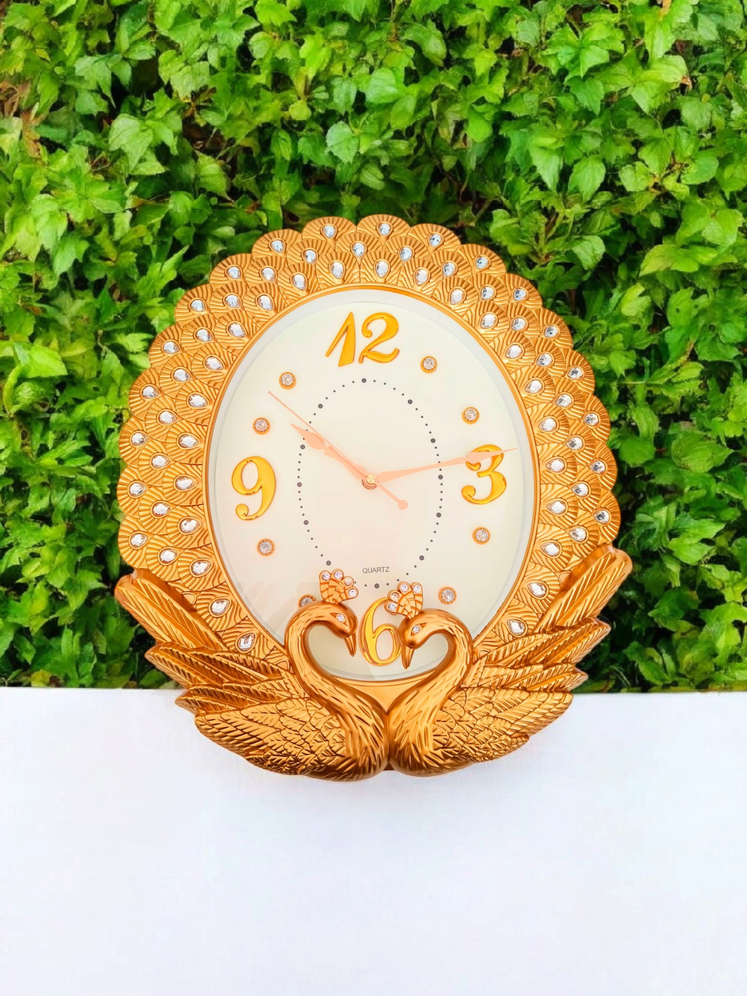 Cadranul ceasului este acoperit cu sticlă care protejează cifrele de praf și zgârieturi. Cifrele romane clasice sunt însoțite de indicatori subtili pentru minute. Cu forme grațioase, acest ceas prezintă o siluetă care imită frumusețea naturală a paunilor. Fiecare detaliu este realizat cu măiestrie, cu aripi care se desfășoară în jurul cadranului ceasului. Este o alegere excelentă pentru cei care apreciază frumusețea clasică și eleganța în obiectele lor de uz cotidian. Cu acest ceas, nu doar că veți fi mereu la curent cu ora, dar veți adăuga și o notă de distincție în locuința dumneavoastră. Prin urmare, acest ceas de perete va adauga nu doar funcționalitate în casa dvs., ci și un strop de sofisticare și tradiție. Fie că este amplasat în sufragerie, birou sau dormitor, va deveni un punct central al decorului.
