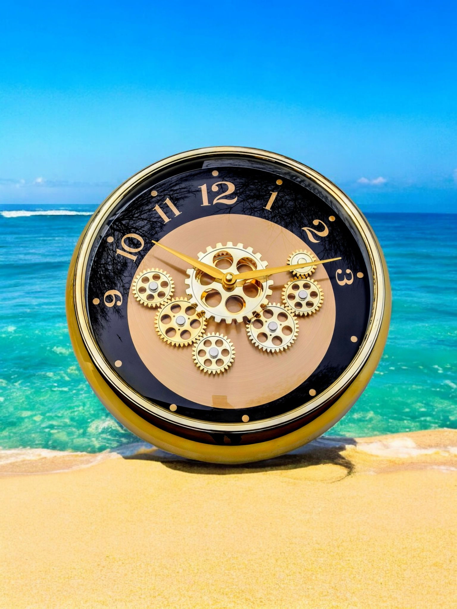 Cu un diametru de 35 cm, acest ceas atrage atenția datorită rotițelor sale în mișcare, oferind un efect dinamic unic. Fie că îl montezi în sufragerie, birou sau într-un restaurant, va adăuga un plus de stil și rafinament.