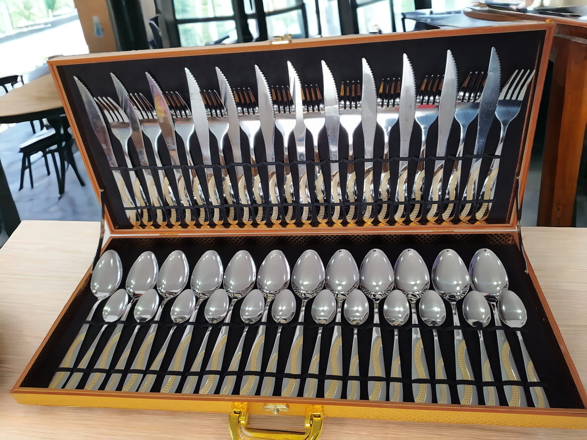 Set tacâm 48 piese cu model este un amestec perfect de funcționalitate și eleganță. Setul este realizat din inox de înaltă calitate. Astfel, se asigură durabilitate și rezistență la rugina și pete. Fiecare piesă este ușor de curățat, fie manual, fie în mașina de spălat vase. Designul atemporal al tacâmurilor le face potrivite pentru orice stil de bucătărie sau de masă, adăugând o notă de eleganță fiecărei mese.