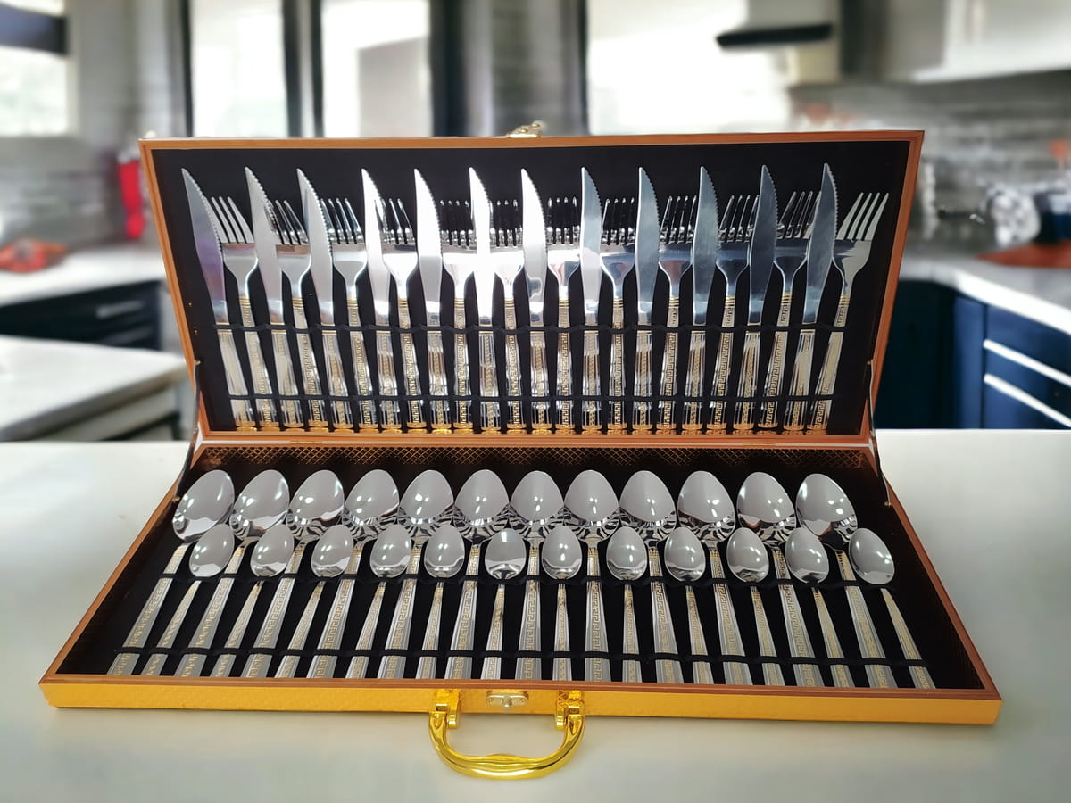 Set tacâm 48 piese este un amestec perfect de funcționalitate și eleganță. Setul este realizat din inox de înaltă calitate. Astfel, se asigură durabilitate și rezistență la rugina și pete. Fiecare piesă este ușor de curățat, fie manual, fie în mașina de spălat vase. Designul atemporal al tacâmurilor le face potrivite pentru orice stil de bucătărie sau de masă, adăugând o notă de eleganță fiecărei mese.