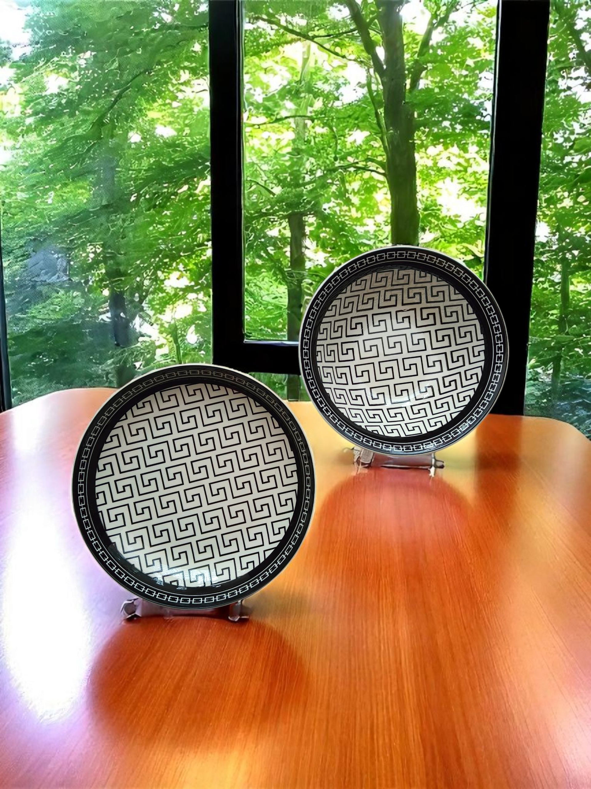 Set ceramic negru cu model grecesc – 6 farfurii și 6 boluri, veselă elegantă pentru 6 persoane
